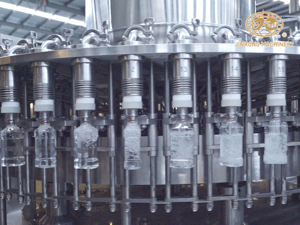 金榮飲料機械廠家制造供應的全套飲料生產線、果汁生產線、碳酸飲料生產線、小瓶礦泉水灌裝設備、大瓶水生產線、桶裝水生產線、純凈水灌裝機設備、瓶裝礦泉水灌裝生產線、易拉罐啤酒灌裝機等系列產品主要運用在純凈水,礦泉水,果汁,茶,熱灌裝飲料,功能飲料,含汽飲料,碳酸飲料,啤酒等液體飲料灌裝生產。其供應的灌裝生產線可配套全自動吹瓶機、水處理設備、前處理設備、飲料殺菌設備、貼標機、包裝機等相關配套機械設備。金榮多年來的設備研發和制造經驗,讓金榮機械為飲料生產企業和水廠等提供了穩定的全套灌裝生產線設備。